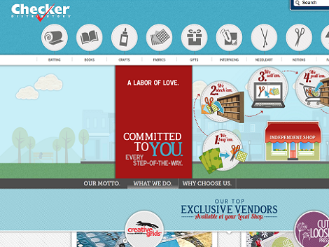 Checker is a distributor with over 100,000 items in stock for specialty quilt shops, including the full line of Creative Grid Rulers.
